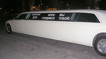 Уже за несколько часов до прилета героев спорта у входа в центральное здание аэровокзала принял дежурство лимузин из Стерлитамака, на котором были высвечены красноречивые слова: «Ирек! Мы гордимся тобой!».