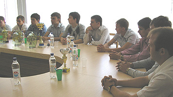 - Мы приглашали на нашу сегодняшнюю встречу представителей Минспорта республики, - к сожалению, никто не пришел. Хотелось бы получить хоть какую-то поддержку от ММПСиТ РБ, хотя бы моральную. Ведь нам очень тяжело одним тащить эту ношу. Вы приобрели бесценный опыт в этом сезоне, ребята. Надеюсь, костяк команды сохранится, и мы будем работать дальше, расти в результатах. Наш университет готов принять в свои стены талантливых ребят, мы можем предоставить им жилье, дать образование, в том числе получить ученую степень, но, к сожалению, только не оплату футбольных контрактов. Еще раз повторю, будем искать солидных спонсоров и поддержки в высших инстанциях.