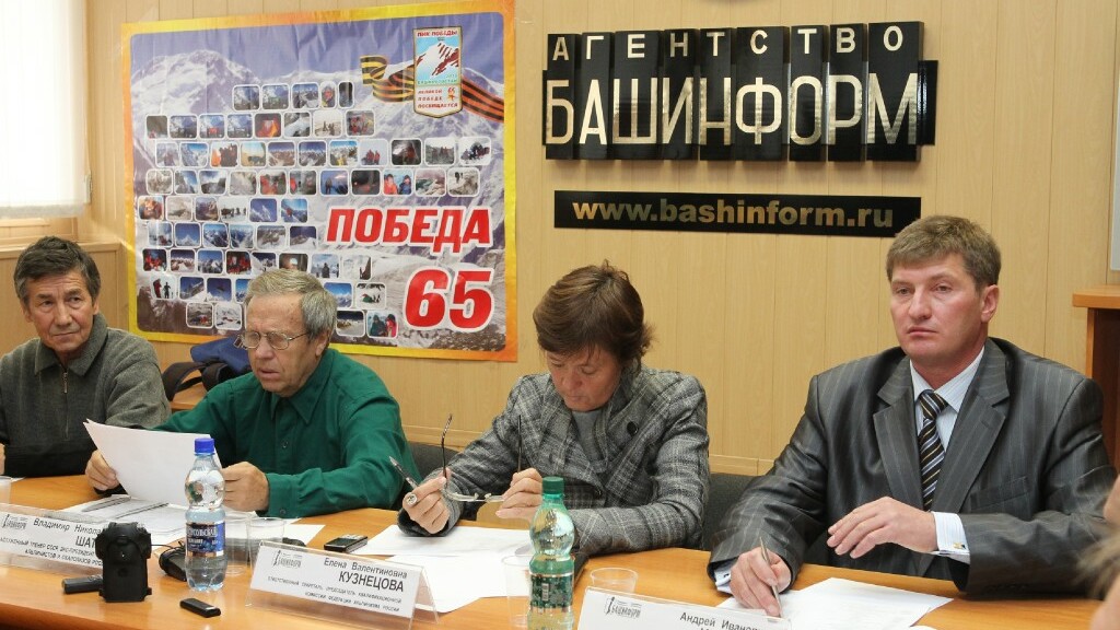 Пресс-конференция была посвящена итогам проекта «Победа-65» – восхождению альпинистов Башкортостана на самый северный семитысячник планеты – пик Победы (7439 м, Тянь-Шань, Киргизия) в честь 65-летия Великой Победы.