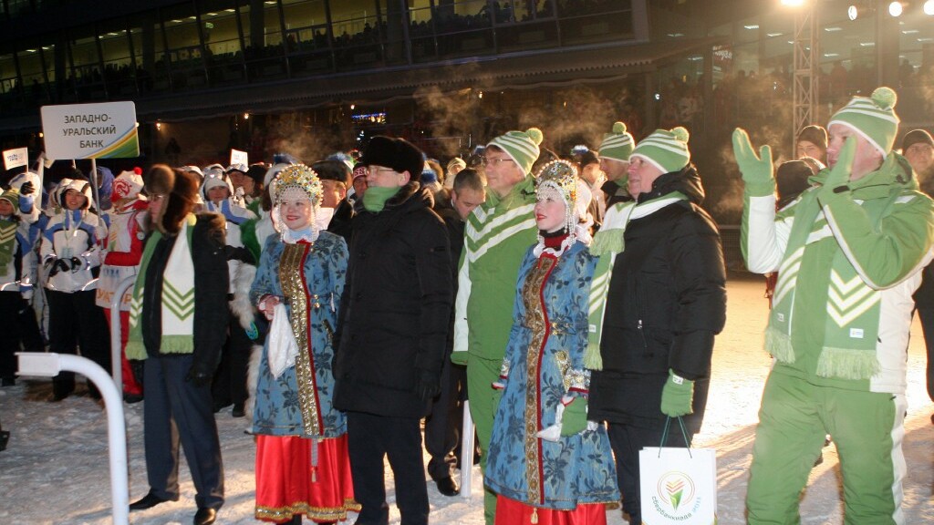 Сегодня вечером в Уфе был дан старт IV Всероссийской зимней Сбербанкиаде России. На уфимском ипподроме «Акбузат» собрались 20 команд со всей России, а также из Казахстана, Украины и Белоруссии. Праздник, на котором присутствовали президент, председатель Сбербанка России Герман Греф, Президент Республики Башкортостан Рустэм Хамитов и почетный президент Олимпийского комитета Леонид Тягачев, открылся ярким лазерным шоу. Затем последовало красочное выступление танцевальных коллективов, а башкирские джигиты показали чудеса вольтижировки. Изюминкой торжества стало появление Белого Медведя, который накануне был выбран одним из символов предстоящих Олимпийских игр 2014 года в Сочи.