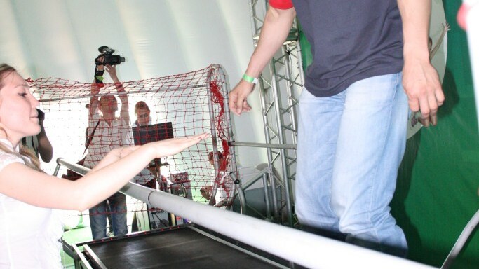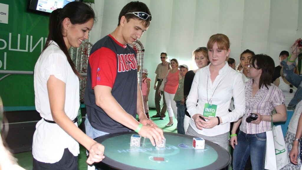 Самым активным тестирующим, кстати, был Алексей Селиверстов – он показал, как надо управлять бобом, стрелять из биатлонной винтовки, сочинять рингтоны, покорять виртуальные горнолыжные склоны и летний каток в зимних коньках. Рима Баталова также не отставала от молодого человека, демонстрируя прекрасную физическую форму и отлично сидящее на ней платье.