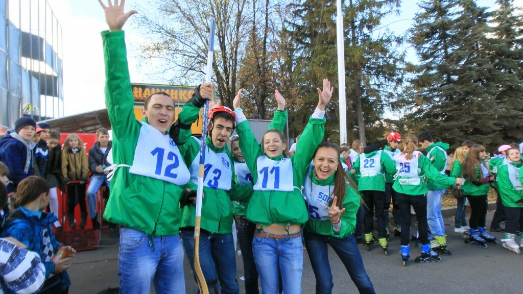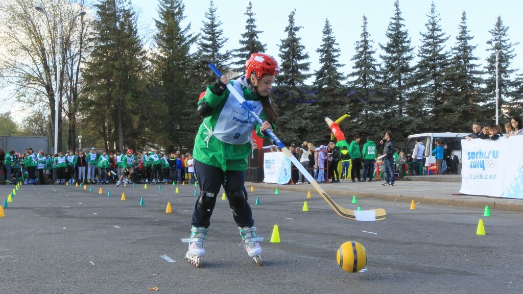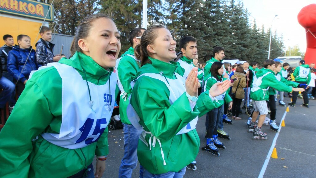 Уфа также поддержала эту всероссийскую акцию - и на площади имени Ленина администрацией столицы и Дирекцией VI Зимних международных детских игр было организовано спортивно-массовое представление, в рамках которого прошла веселая волонтерская эстафета. Это соревнование представляет собой вольную интерпретацию зимних видов спорта: забег команд волонтеров на 500 метров, который выполняется с помощью инвентаря, имитирующего зимние виды спорта: вместо коньков — ролики, вместо шайб — мячи.