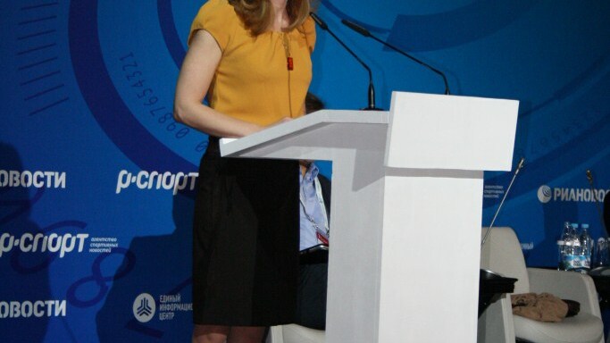 Пресс-секретарь президента Олимпийского комитета России ОКР Мария Киселева поприветствовала собравшихся от лица Александра Жукова:
