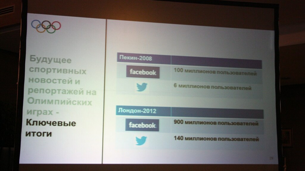- В 2008 году в Пекине произошел один из самых заметных сдвигов в медийном освещении Игр в интернете. Вероятно, того же самого можно ожидать и в Сочи, - сказал господин Эдгар. - По сравнению с Олимпийскими играми в Пекине на ОИ-2012 в Лондоне произошел большой скачок в интересе к Олимпиаде со стороны пользователей социальных сетей. В 2008 году было порядка 100 миллионов пользователей Facebook, следившими за ОИ и писавшими об их событиях с помощью соцсети, в Twitter их было 6 миллионов. В 2012-м эти цифры составили соответственно 900 и 140 миллионов человек, - сказал он.