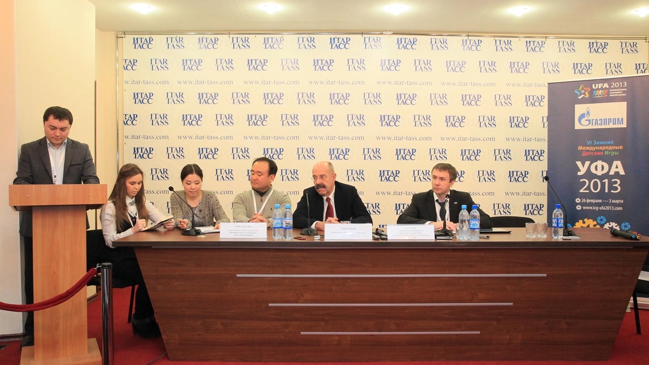 В преддверии торжественного открытия VI Зимних Международных детских игр состоялась пресс-конференция с руководителями этих глобальных соревнований. В ней приняли участие Президент Комитета Международных детских игр Торстен Раш, председатель Совета попечителей образовательного учреждения города Дэгу (Южная Корея) Шин Чоль Вон и руководитель Дирекции МДИ-2013 в Уфе Александр Степанов.