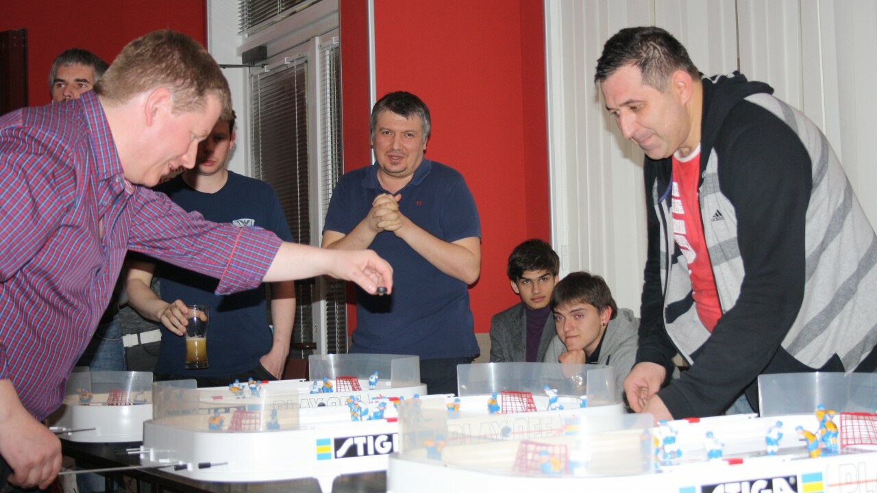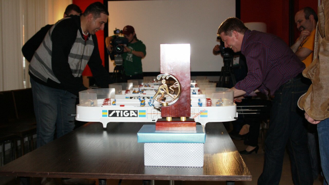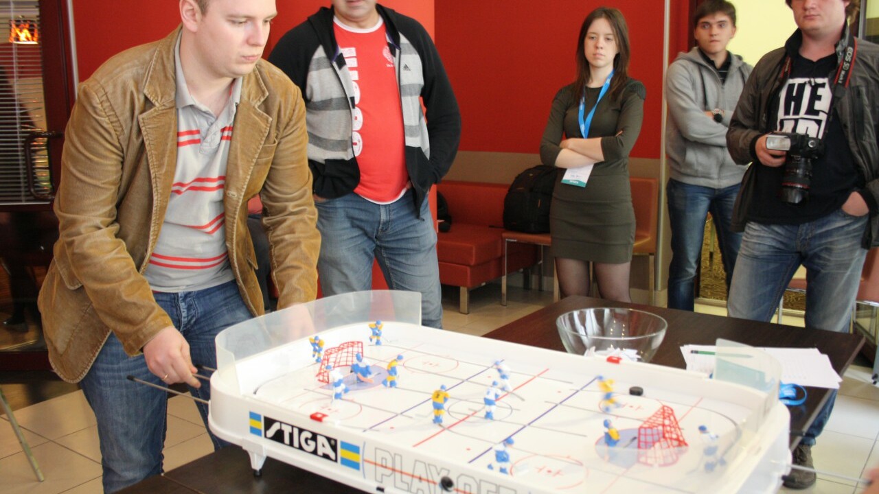 24 апреля, накануне старта VII «Кубка Газпром нефти» среди детских команд, журналисты, прибывшие в Омск для освещения этого масштабного события, тоже смогли почувствовать себя хоккеистами: для них был организован турнир по настольному хоккею.