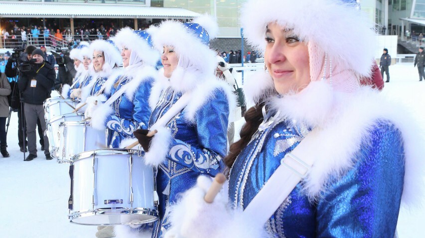800 Дедов Морозов и молодежь согрели себя и зрителей ипподрома зажигательным танцем в довольно прохладную уфимскую погоду (20 градусов мороза).