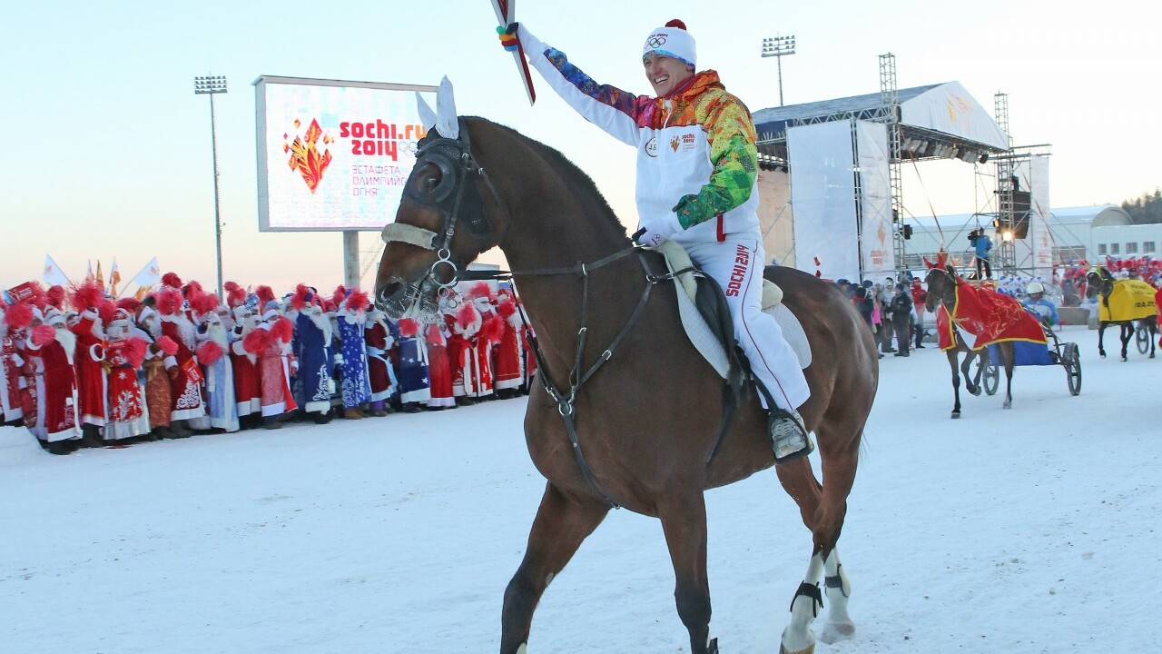 Гульназ Губайдуллина – чемпионка Европы и серебряный призер чемпионата мира среди юниоров по современному пятиборью – проскакав круг по ипподрому с факелом в руке, передала его финальному факелоносцу первого дня – Рустему Сабирхузину.