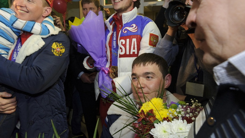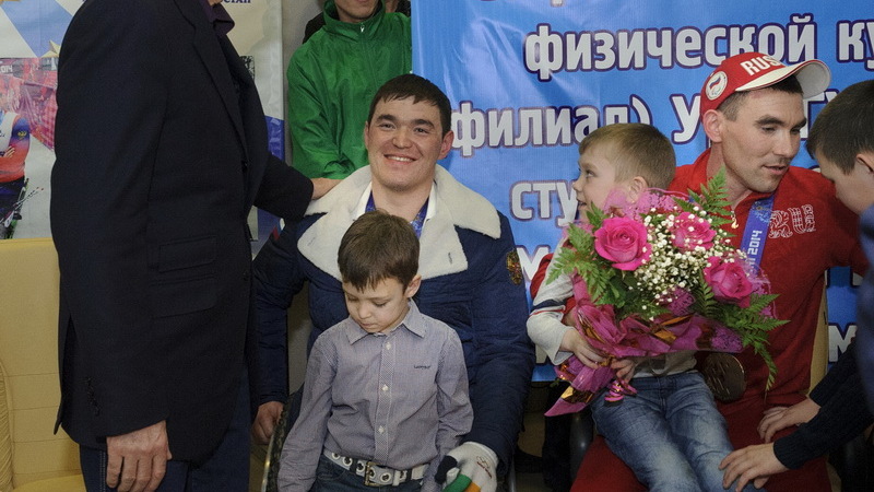 Через несколько часов после встречи паралимпийцев на родину прилетел олимпийский чемпион по шорт-треку Руслан Захаров. Он не был дома почти два месяца. Сразу после Игр он отправился в составе российской сборной в Монреаль на чемпионат мира.