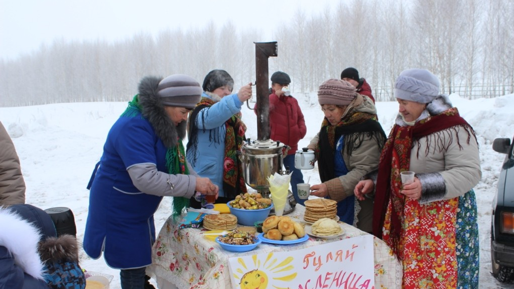 Пока на лыжной трассе разгорались спортивные страсти, полным ходом развернулась широкая Масленица. Звучали песни, играла гармонь, зрители пускались в весёлую пляску. Радушные хозяйки зазывали всех к горячим самоварам, угощали блинами, пирожками, баурсаком, шашлыком.