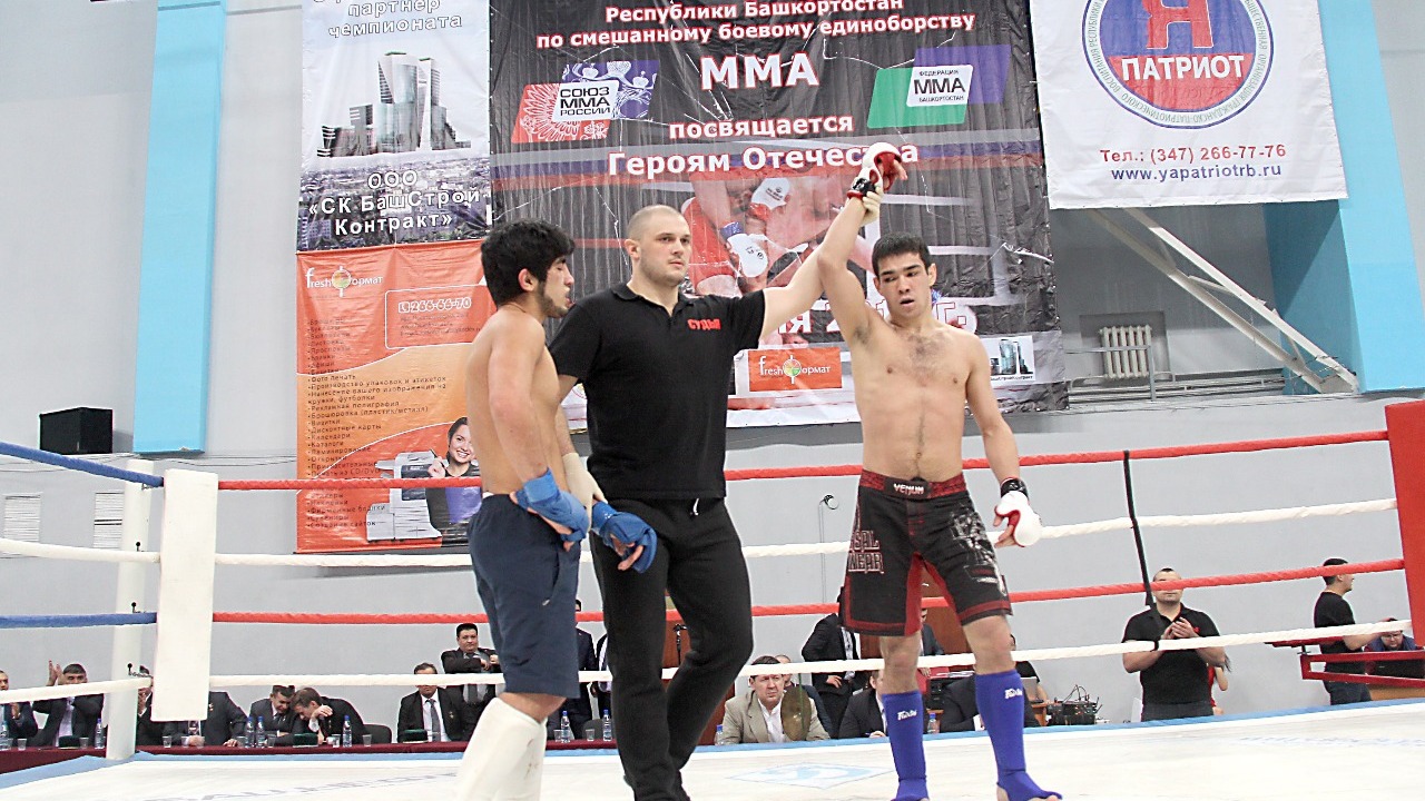 УФА, 8 мар 2015. /ИА «Башинформ», Сергей Захаров/. В Уфе, на стадионе «Динамо» состоялся чемпионат Башкортостана по смешанному боевому единоборству ММА среди любителей, посвященный Героям России. Состязания прошли в рамках «Вахты героев Отечества» по инициативе «Российской ассоциации героев» и региональной общественной организации гражданско-патриотического воспитания «Я патриот» при поддержке Администрации Главы республики и Министерства спорта и молодежной политики Башкортостана.