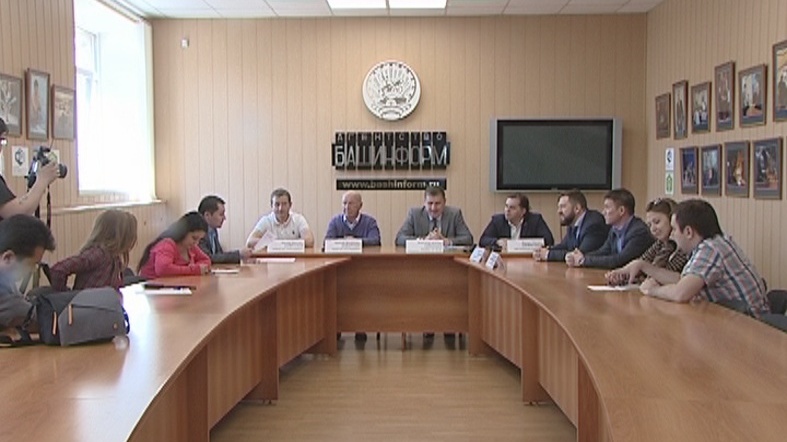 УФА, 29 апр 2015. /ИА «Башинформ», Эльмира Сабирова/. В агентстве «Башинформ» прошла пресс-конференция, посвященная итогам очередного сезона Любительской хоккейной лиги Башкортостана.