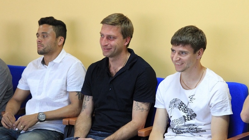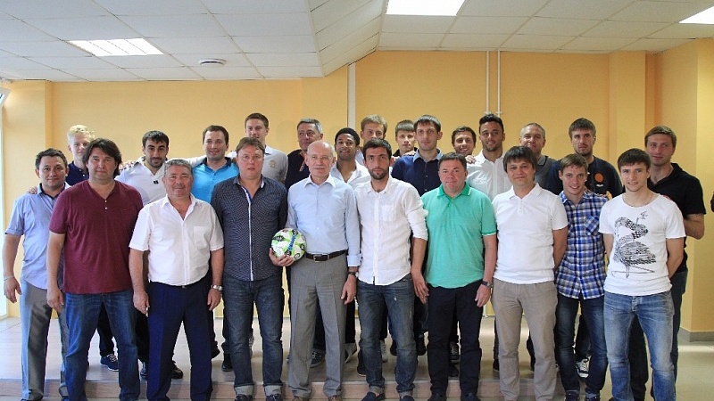 УФА, 2 июн 2015. /ИА «Башинформ», Илья Спиридонов/. На обновленном уфимском стадионе «Нефтяник» Глава Башкортостана Рустэм Хамитов встретился с игроками и тренерским штабом футбольного клуба «Уфа», который на прошлой неделе успешно завершил сезон и сохранил за собой место в российской Премьер-лиге. На встрече обсуждались итоги футбольного сезона 2014/2015, а также перспективы развития ФК «Уфа» и планы на ближайший период.