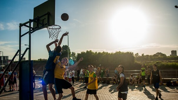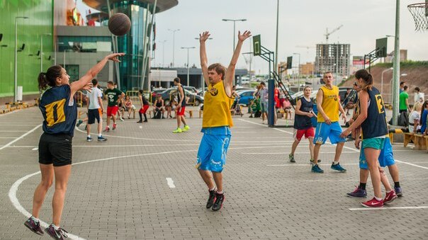 УФА, 4 июн 2015. /ИА «Башинформ», Дмитрий Слезин/. В Уфе на кортах возле ТРЦ «Планета» состоялся турнир по стритболу (уличному баскетболу) «Планета Баскет».