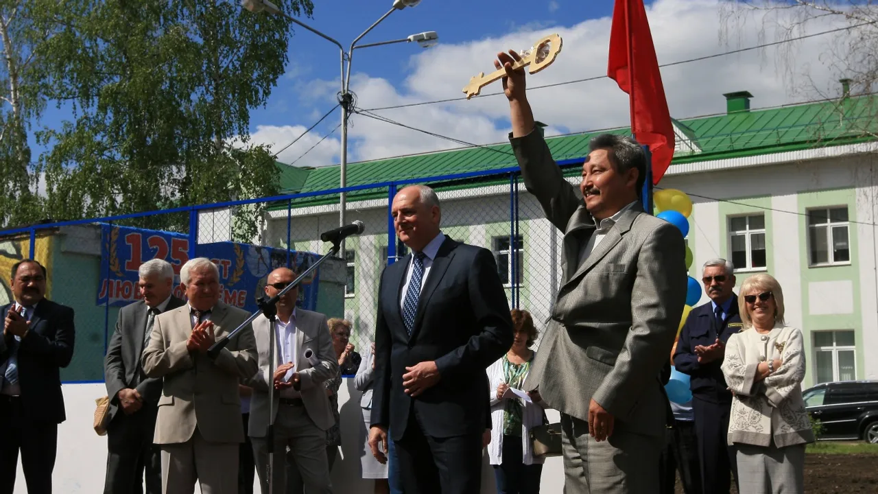 Он вручил символический ключ директору гимназии. Атмосферу спортивного праздника украсили своим выступлением гимнастки. Затем начался турнир по мини-футболу среди юных футболистов.