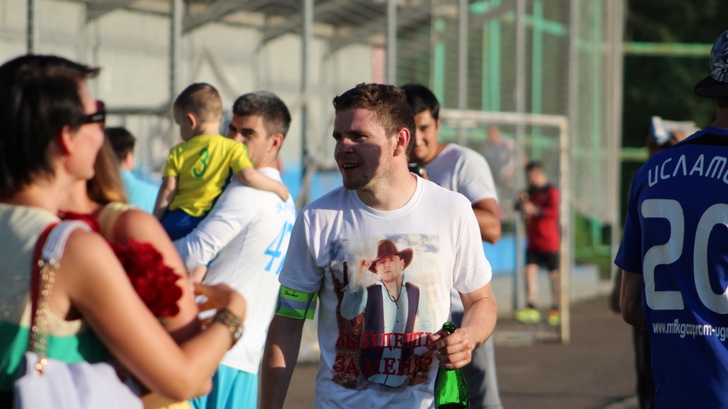 Этот вопрос был адресован не какому-нибудь коллеге по футбольному ремеслу, дабы он заменил его на поле, а его любимой девушке Элине. В руке у Исмагилова появилась красная шкатулка с кольцом - Динар сделал своей возлюбленной предложение под аплодисменты свидетелей сего события. Розы от каждого из участников, импровизированный оркестр из салона автомобиля, скромный, но зато свой салют в честь торжества и брызги шампанского - так романтично завершился этот футбольный знойный вечер.