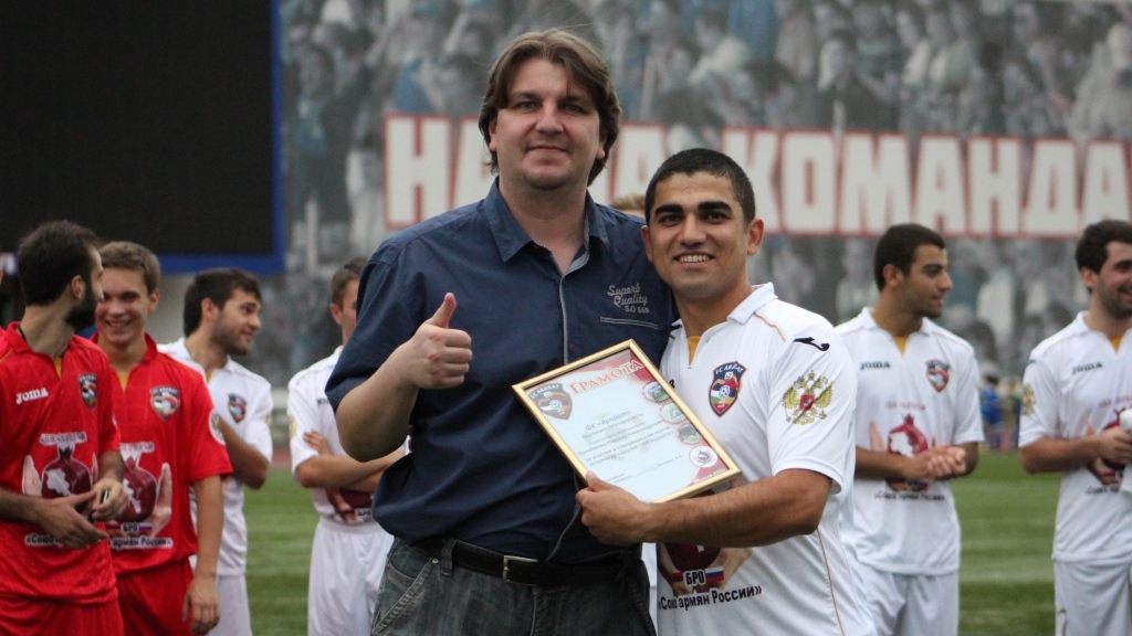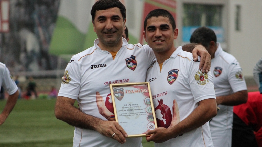 УФА, 24 июл 2015. /ИА «Башинформ», Дмитрий Слезин/. Используя паузу в футбольном чемпионате Республики Башкортостан, уфимский «Арарат» провел товарищеский поединок против «Друзей Арарата» - болельщиков и персонала. За «Друзей» играли президент клуба Аркади Даларян, его родной брат Араик, и на подкрепление им и поклонникам были отданы из основы «Арарата» два самых «заводных» нападающих - Артур Кспоян и Александр Торосян.