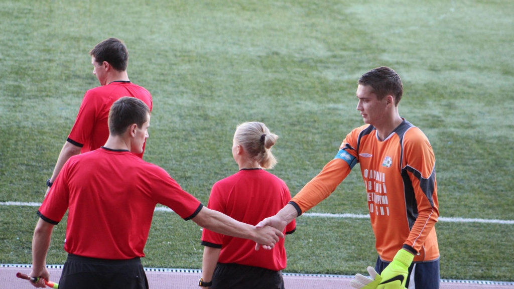 Во-первых, судить вышла вместе с главным арбитром Артуром Зайнагутдиновым и его помощником Андреем Кашубой девушка - бывший вратарь уфимской «Агидели» Ольга Минюк.