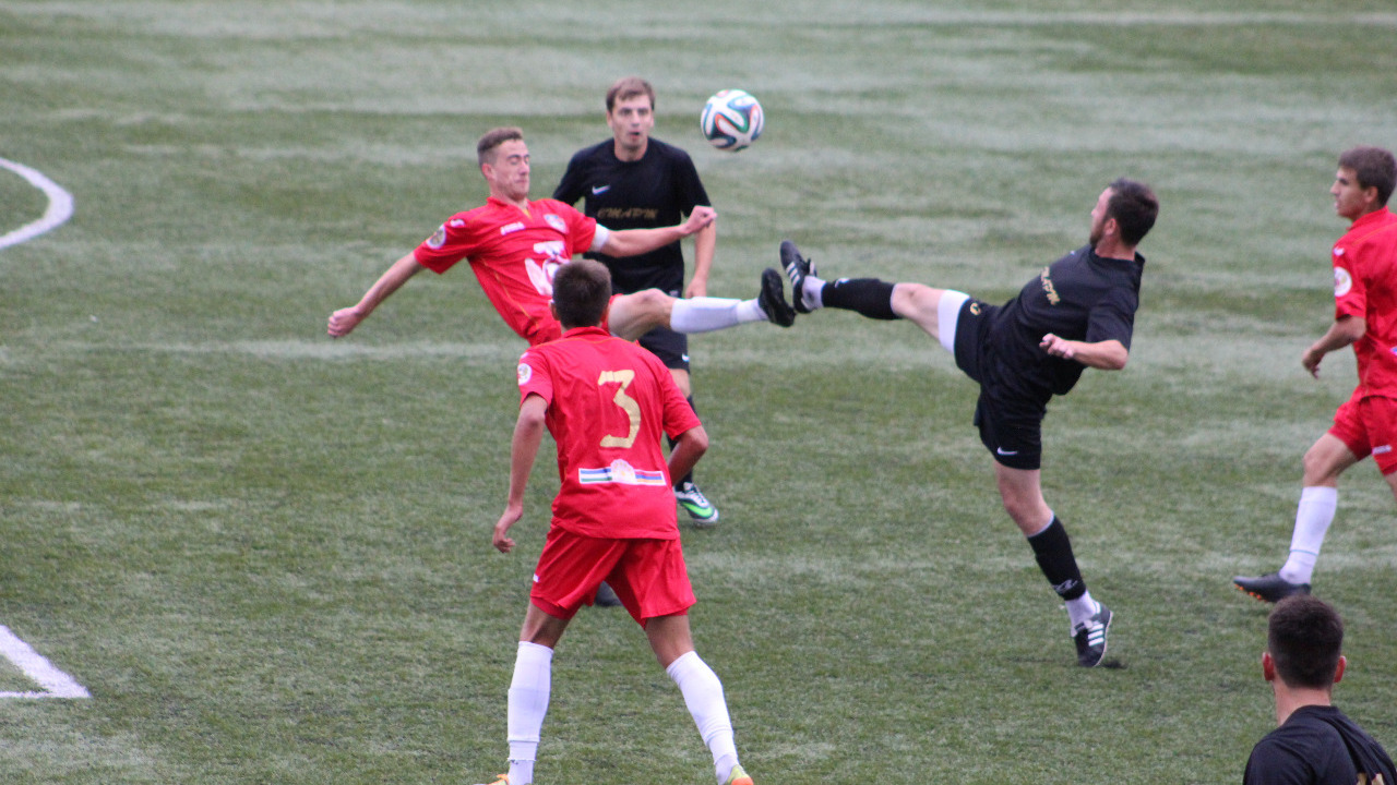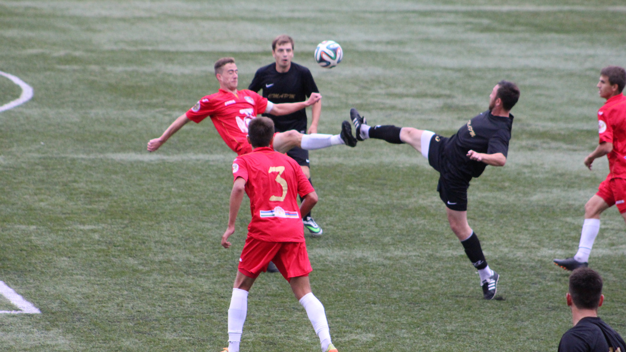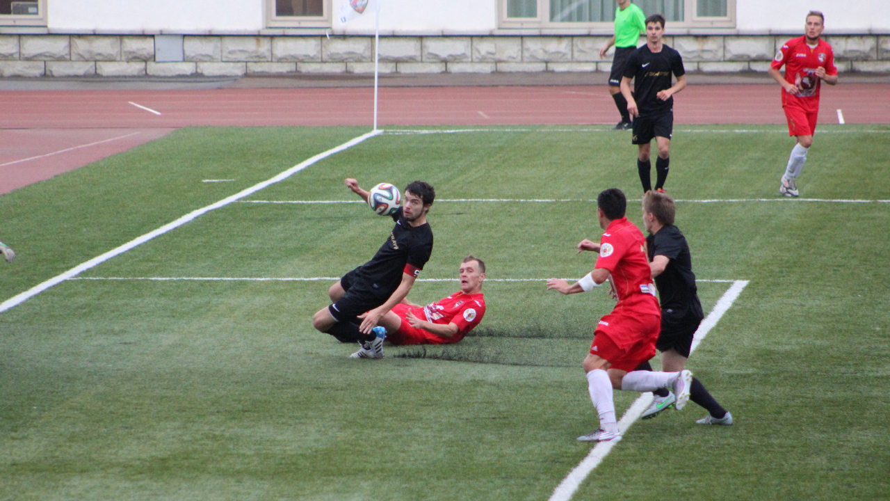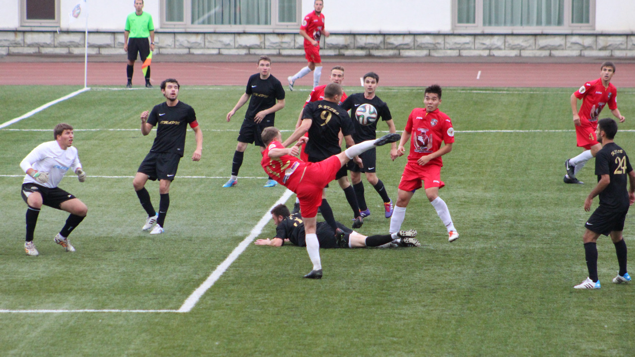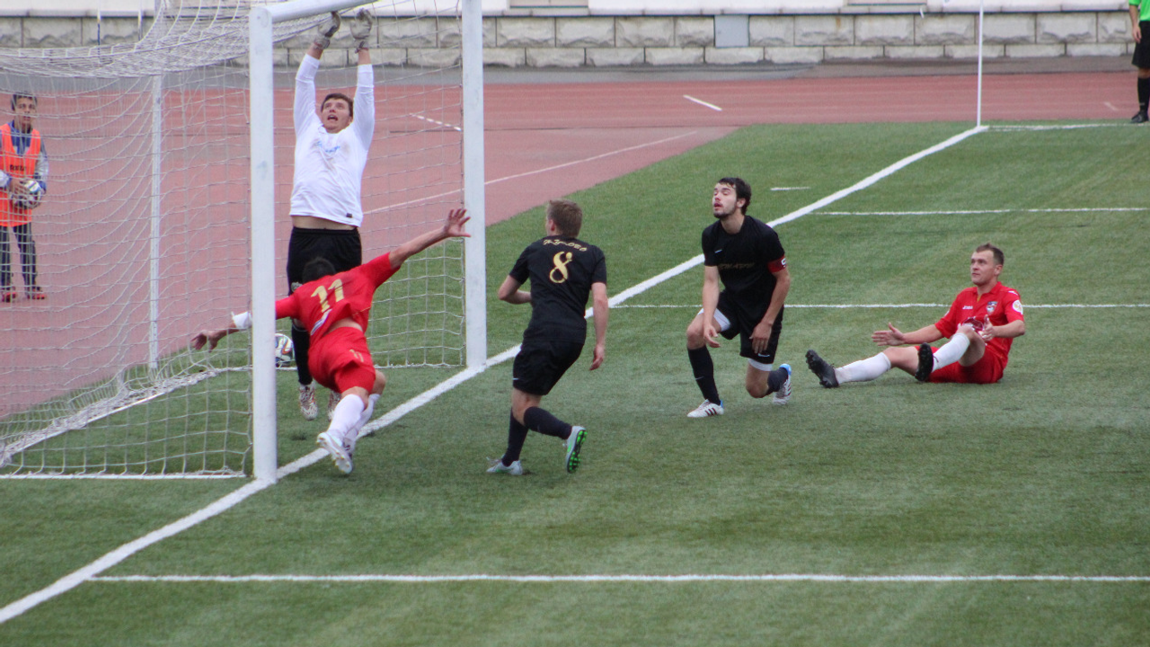 В середине первого тайма дальний удар Вячеслава Ткачева обескуражил стража ворот «араратовцев» Виктора Янбарисова - 1:0.