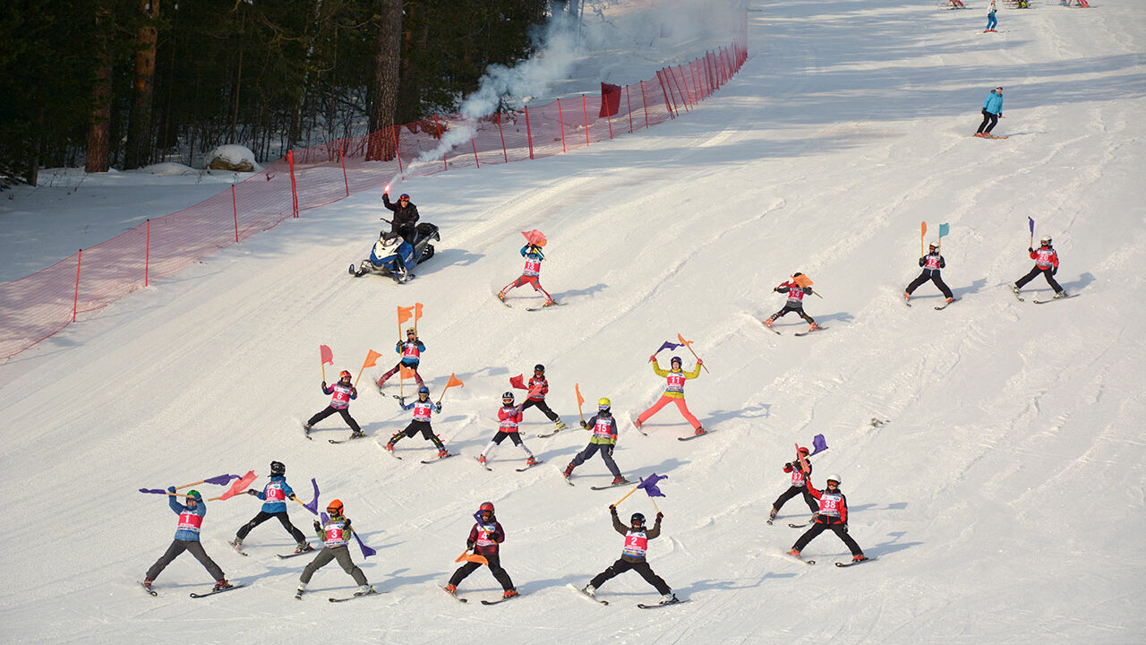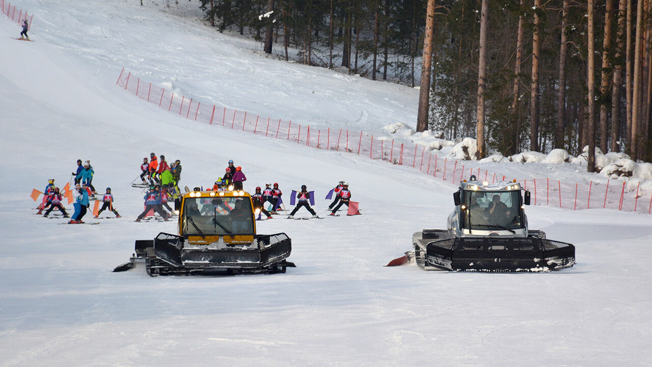 Затем на первом склоне горы Мраткино развернулась настоящая шоу-программа. Свое мастерство показали машинисты на снегоуплотнительных машинах, зрелищные спуски продемонстрировали юные спортсмены со своими наставниками.