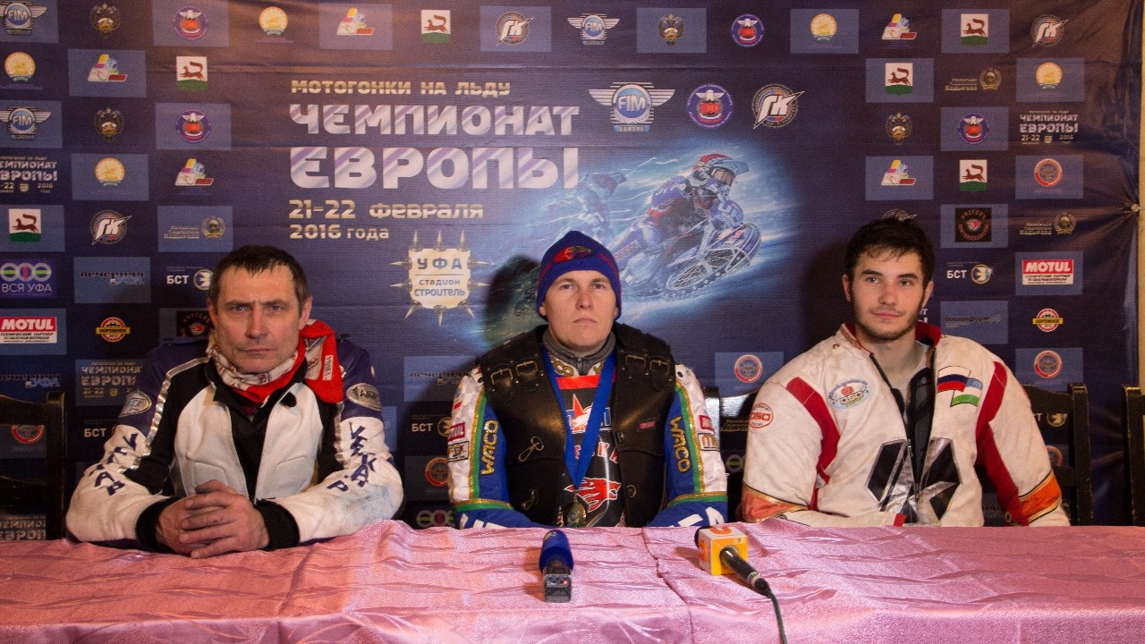 УФА, 23 фев 2016. /ИА «Башинформ», Георгий Шишкин/. Николай Красников не представляет себя на втором и третьем месте в финале чемпионата Европы в Уфе. На пресс-конференции легендарный мотогонщик поблагодарил своих механиков за тщательную подготовку, а также Сергея Карачинцева за помощь в предподготовительной тренировке к чемпионату.