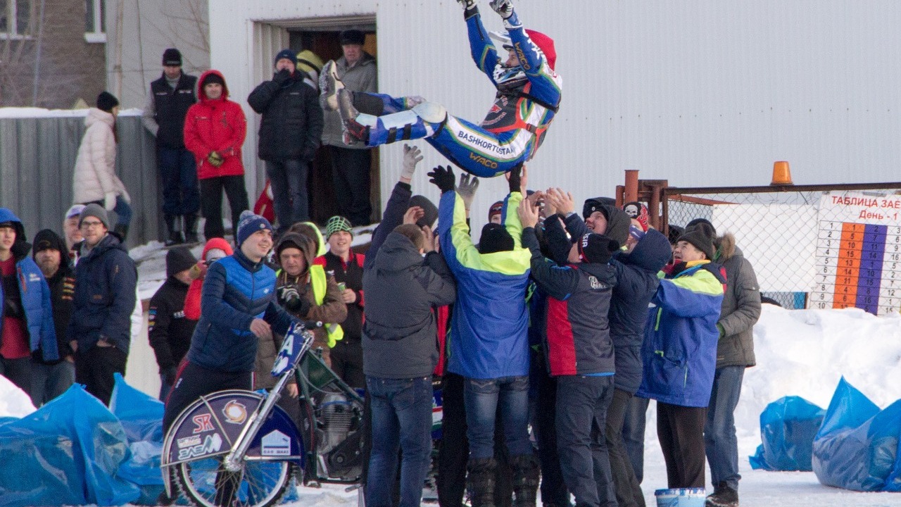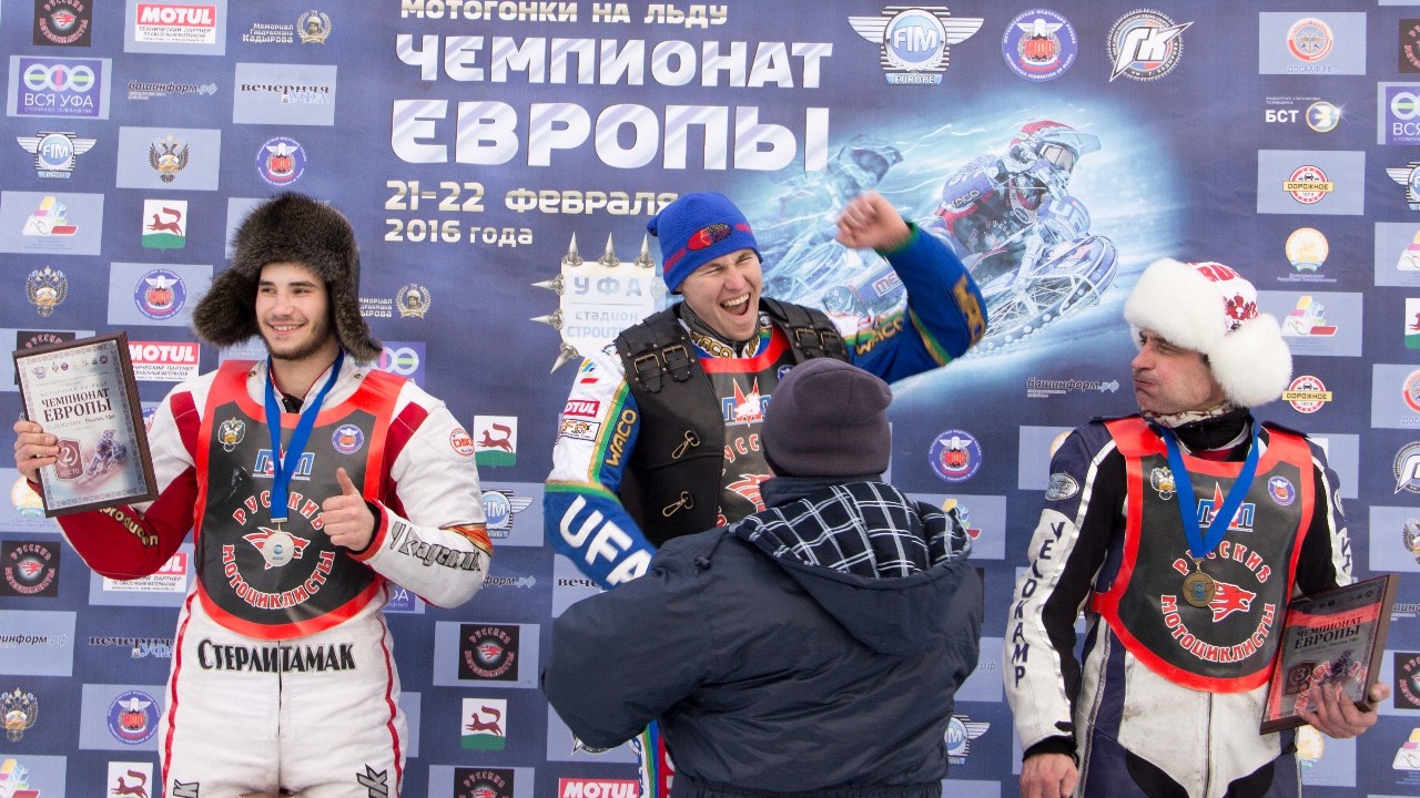 УФА, 23 фев 2016. /ИА «Башинформ», Георгий Шишкин/. Триумфом для Башкортостана завершился чемпионат Европы по мотогонкам на льду. Главным из триумфаторов стал многократный чемпион мира и России, а теперь и Европы Николай Красников. Как и в первый день финала, уфимский гонщик не оставил шансов соперникам, выиграл все свои заезды и завоевал заветный недостающий титул - чемпиона Европы.