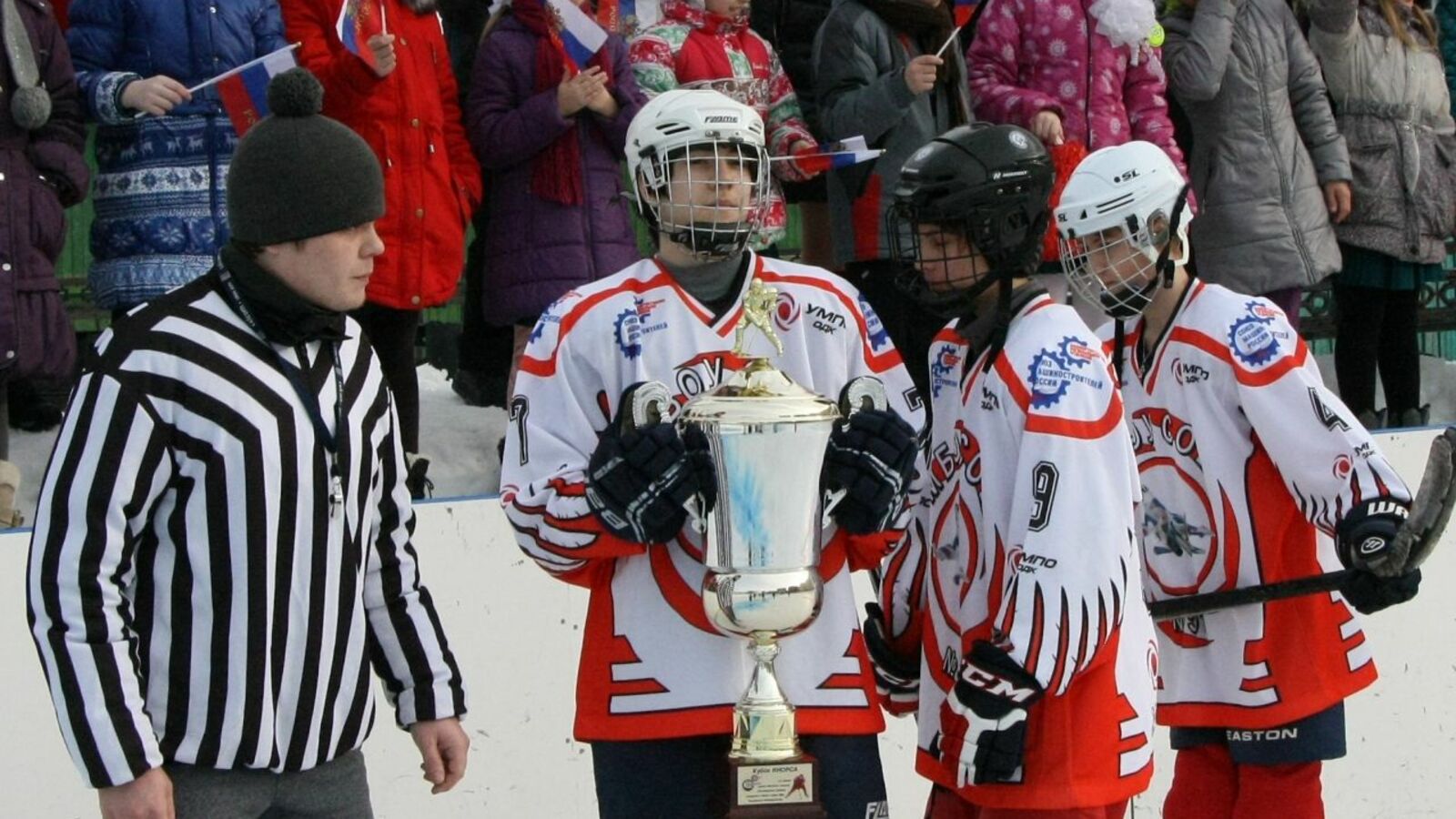 И гимн, и клятва прозвучали и сегодня, после того, как на ледовое поле был вынесен главный трофей турнира – сам Кубок Инорса. Вынесла его под аплодисменты зрителей команда школы №51, которая три года подряд становилась чемпионом и остается в данный момент обладателем Кубка.