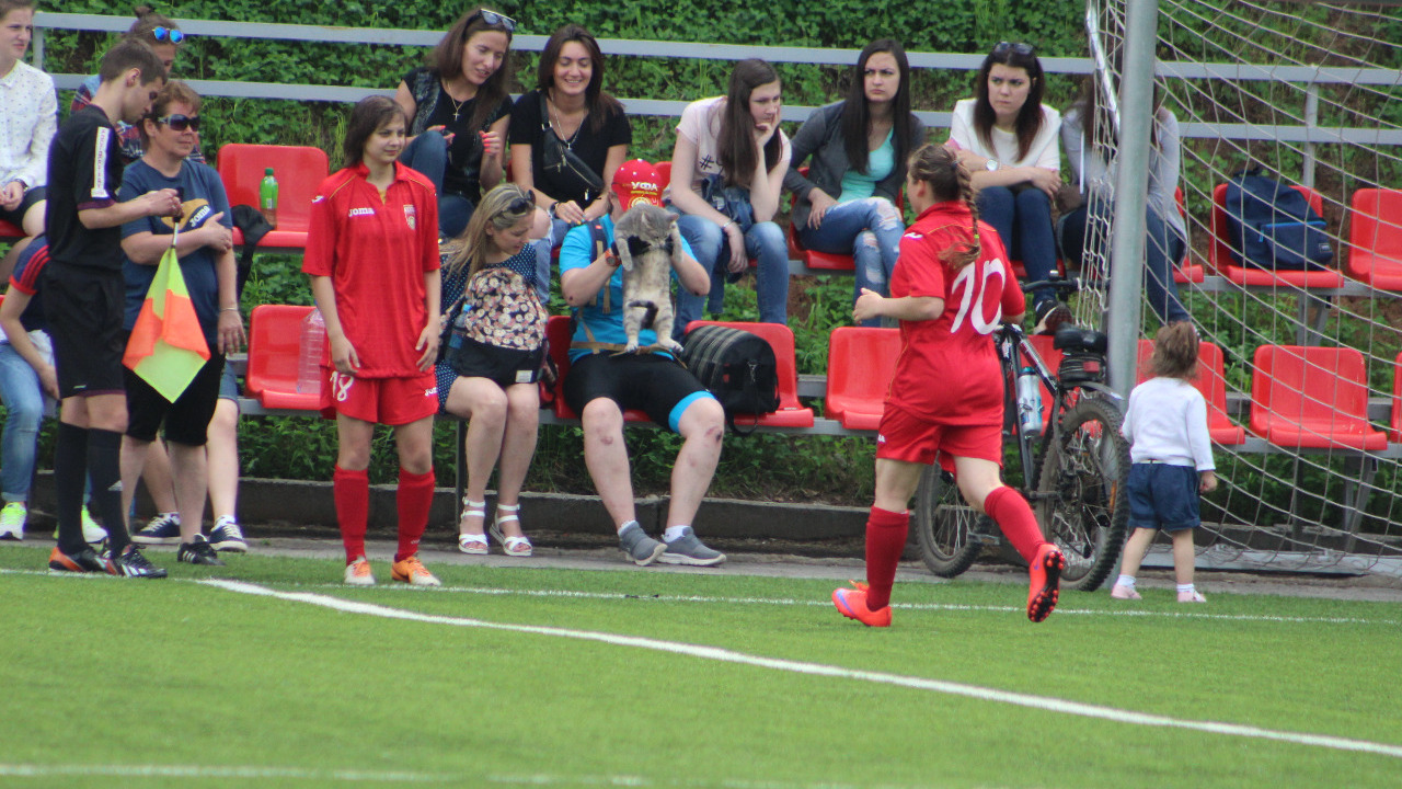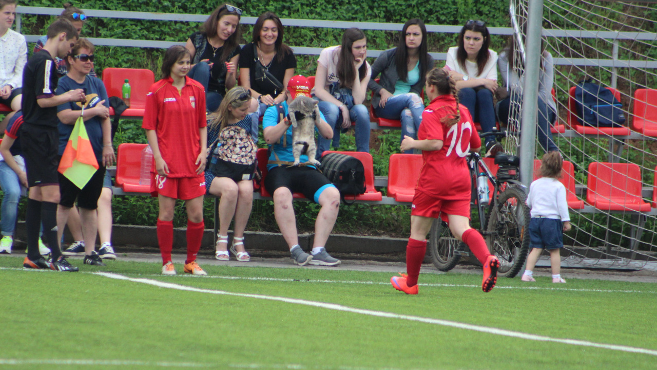 Совет тренера дошел до девушек Екатеринбурга только во втором тайме. А на первых минутах стартового отрезка поединка мяч два раза попадал в штанги ворот «Уфы», да еще не раз иронично прокатывался в опасной близости от заветной цели. Новиков подливал масла в огонь, объясняя всем присутствующим, что судья свистит в хозяйскую сторону. Его не понимали, так как желали победы своим «горожанкам» - на трибунах собралось около сотни человек, среди которых были и участники матчей завершившегося перед этой игрой детского турнира. Девиз: «Уфа - моя команда» красноречиво подтвердил свою суть: за матчем наблюдали представители главного клуба республики (Тыртышные в составе трех человек), дети и мамы, юные футболисты и преданные болельщики, был даже кот.