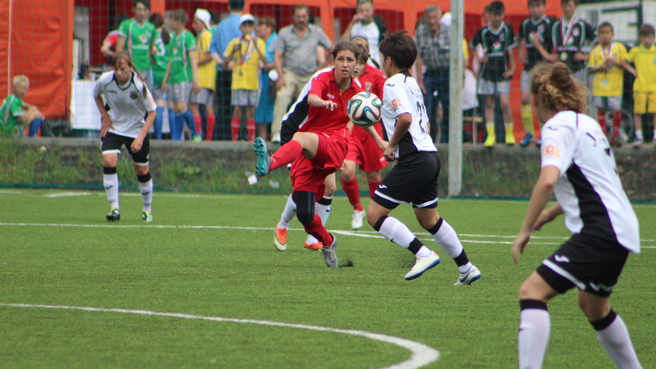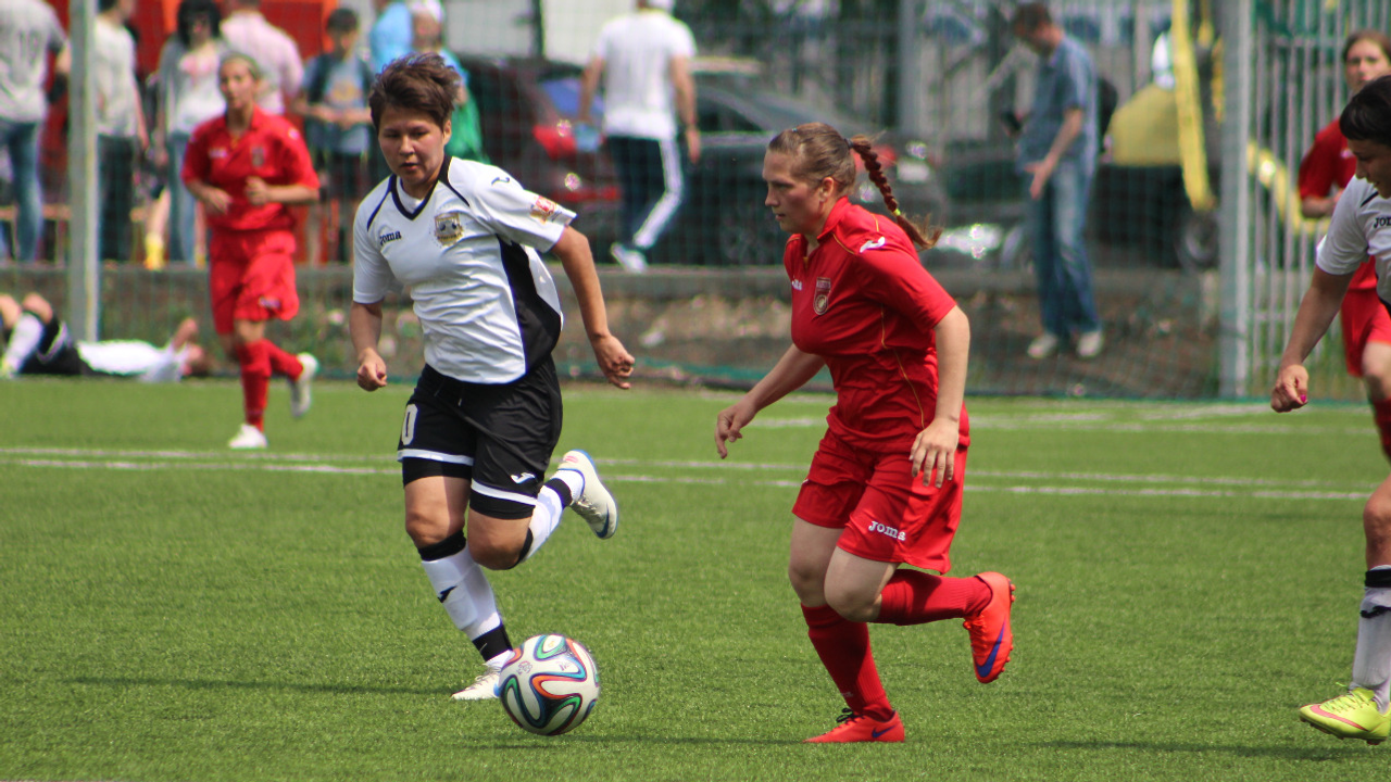 УФА, 29 май 2016. /ИА «Башинформ», Дмитрий Слезин/. На резервном поле стадиона «Нефтяник» в Уфе прошел матч 1/32 финала Кубка России-2016 по футболу среди женских команд. ЖФК «Уфа» принимала «УПИ-Яву» из Екатеринбурга.