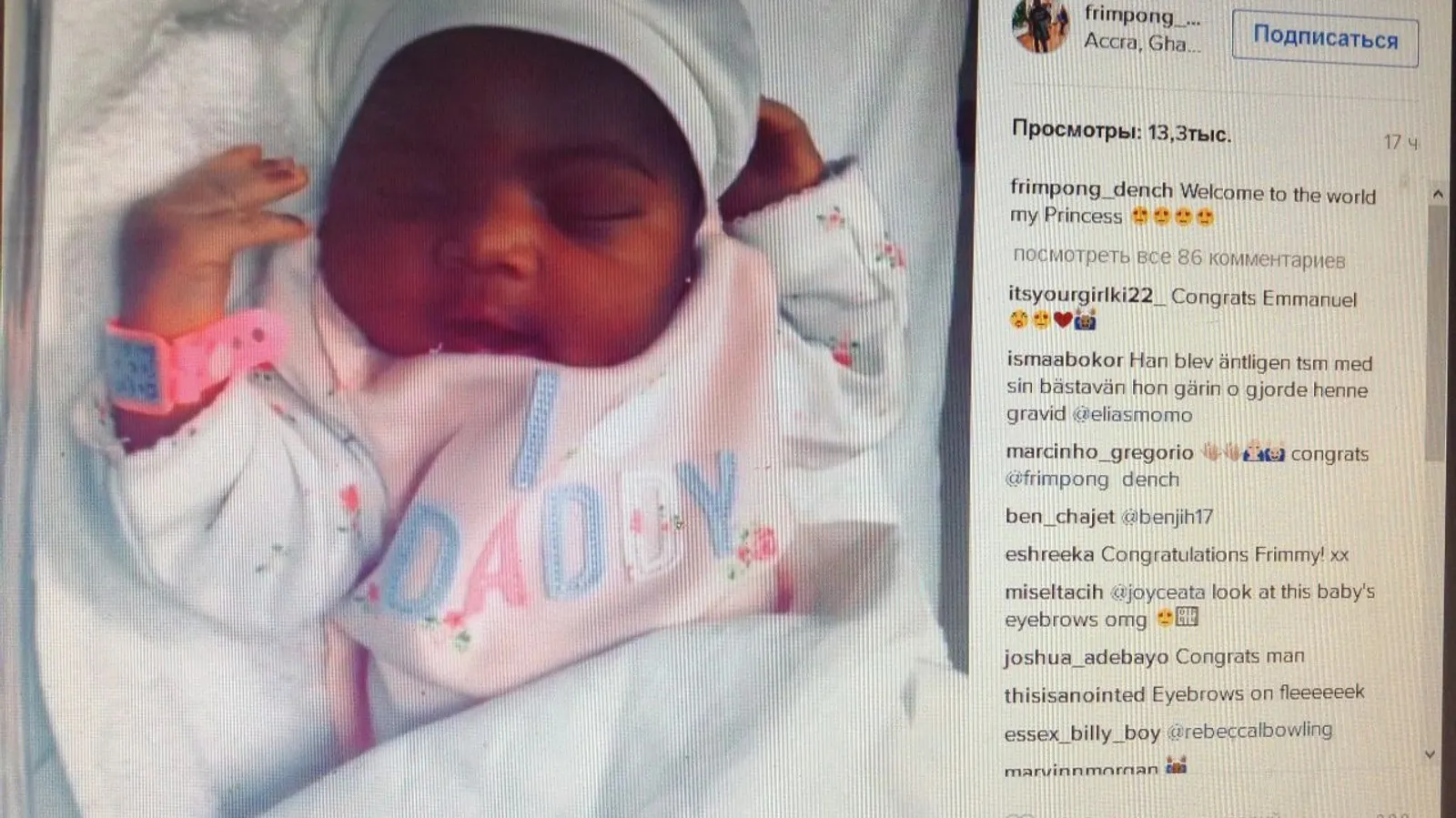 У бывшего «уфимца» Эммануэля Фримпонга родилась дочь