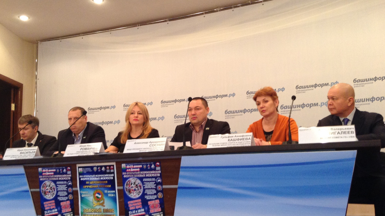 УФА, 19 дек 2016. /ИА «Башинформ», Дмитрий Слезин/. C 21 по 23 декабря в уфимском СДК «Динамо» пройдет XIII Открытый Всероссийский форум боевых искусств. В преддверии традиционного предновогоднего мероприятия в агентстве «Башинформ» состоялась пресс-конференция с организаторами форума.