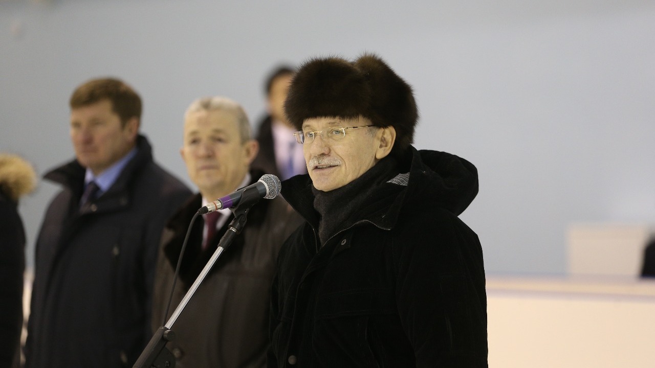 УФА, 24 дек 2016. /ИА «Башинформ», Александр Смирнов/. 24 декабря Глава Башкортостана Рустэм Хамитов в ходе рабочей поездки в Чекмагушевский район побывал на открытии нового крытого ледового катка «Чекмагуш Арена».
