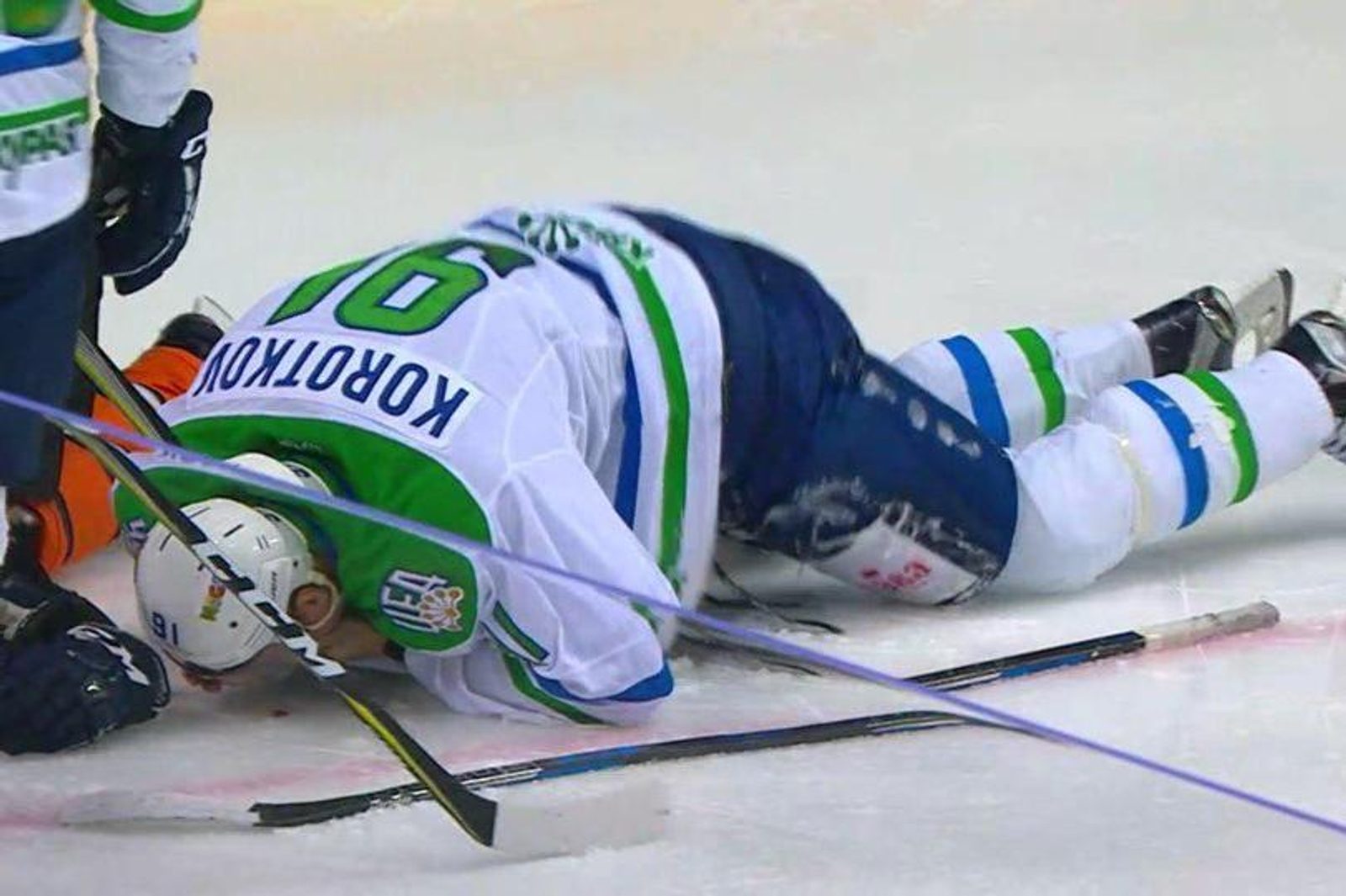 Коротков схватился за лицо, а после на лед полилась кровь. Нападающему уфимской команды пришлось уехать в раздевалку. Виновника эпизода арбитры удалили за «опасную игру высоко поднятой клюшкой» и назначили дисциплинарный штраф 5+20.