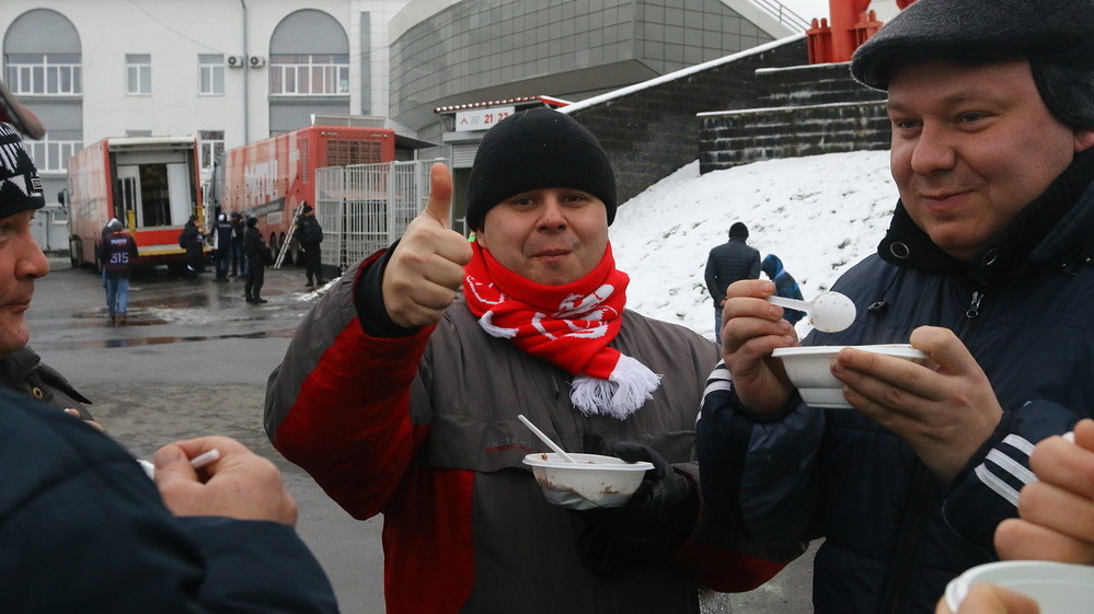 УФА, 19 ноя 2017. /ИА «Башинформ», Наталья Овчарук/. Подкрепились кашей, согрелись горячим чаем и прошли на трибуны стадиона «Нефтяник» свободно. Все это для болельщиков футбольного клуба «Уфа» организовали во время матча 17 тура чемпионата России по футболу с «Уралом». С первых минут хозяева поля взяли инициативу в свои руки, а точнее ноги, и прессинговали гостей из Екатеринбурга. «Уфа» трижды серьезно угрожала воротам соперника и лишь на четвертый раз штрафной в исполнении Дмитрия Стоцкого вывел команду вперед - 1:0. «Урал» до перерыва пытался сравнять счет. Однако со всеми мячами, летевшими в створ ворот «горожан» ловко справлялся Александр Беленов.