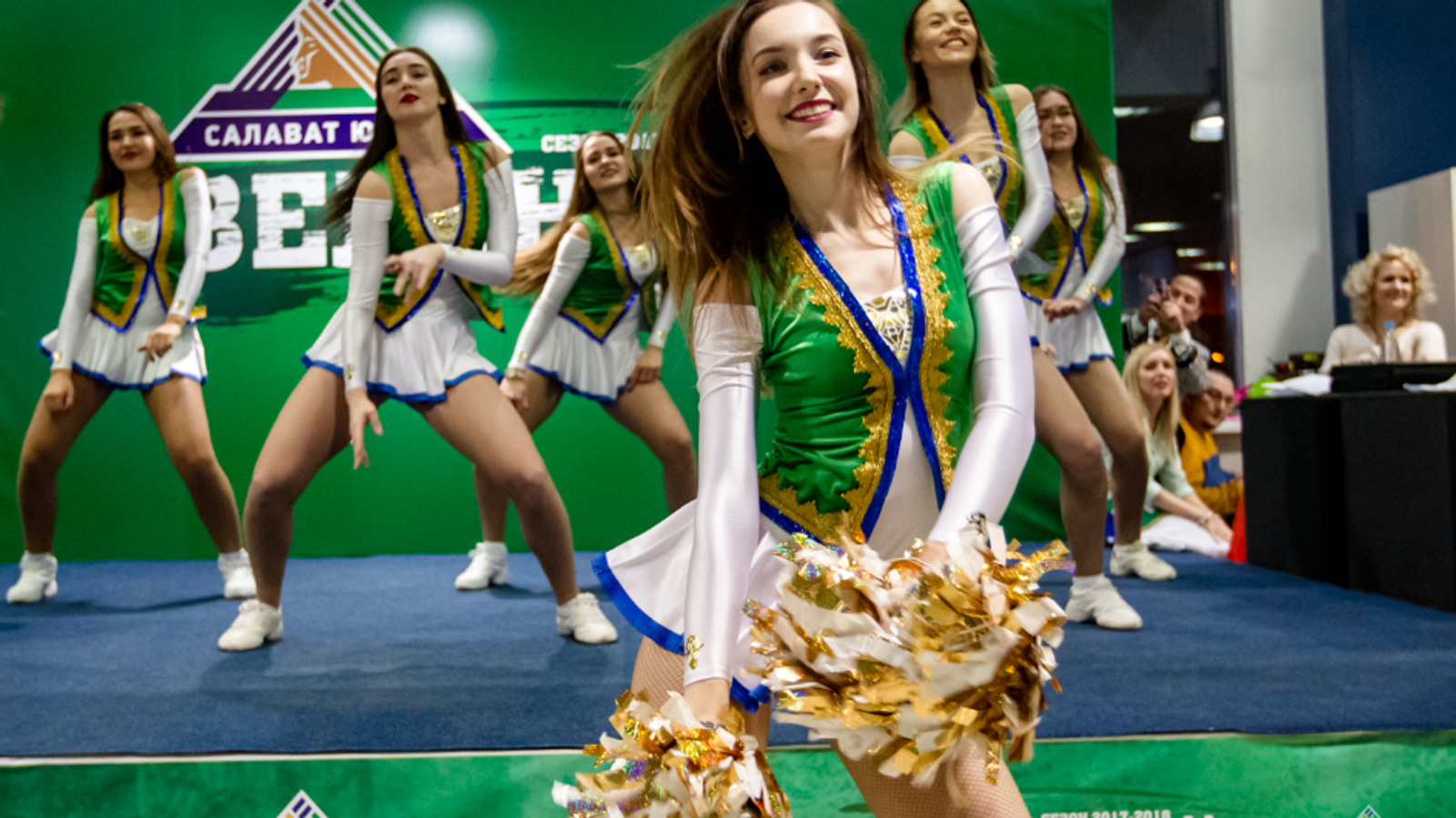 УФА, 27 ноя 2017. /ИА «Башинформ», Наталья Овчарук/. Матчи на «Уфа-Арене» - это громкая музыка, талисманы Салават и Юлай и красивая группа поддержки, которая радует хоккейных болельщиков не только со сцены, но и между секторами. Девушки из группы поддержки хоккейного клуба «Салават Юлаев» вступили в борьбу за звание лучших в восточной конференции КХЛ.