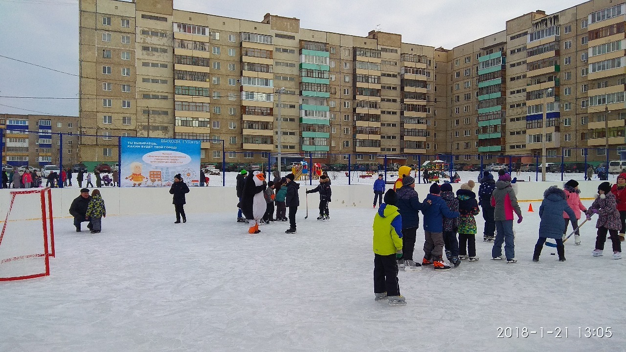 Праздник начался с открытия в этом дворе построенного хоккейного корта, лед которого тут же опробовали воспитанники секции хоккея, сразившись в дружеском матче. Взрослые болели за команды юных хоккеистов, а школьники развлекалась на новых спортивных площадках. Кто-то состязался в скорости и ловкости в эстафетах, кто-то гонял футбольный мяч, а кто-то играл в «Волшебную шляпу». В этой игре каждый участник мог продемонстрировать свои таланты - спеть, станцевать или рассказать стихотворение. Здесь же можно было согреться, выпив стаканчик горячего чая, сообщили в городской администрации.