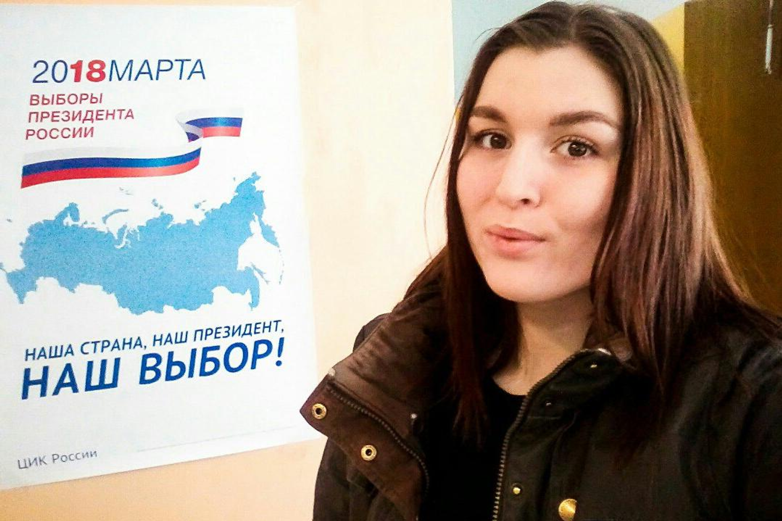 УФА, 18 мар 2018. /ИА «Башинформ», Наталья Овчарук/. 21-летняя вратарь гандбольного клуба «Уфа-Алиса» Виолетта Поздеева одной из первых выполнила свой гражданский долг и с утра 18 марта пришла проголосовать за будущего президента России.