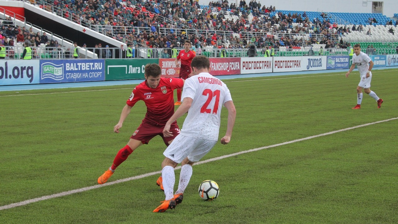 УФА, 30 апр 2018. /ИА «Башинформ», Наталья Овчарук/.Первый тайм матча 28 тура РФПЛ на поле стадиона «Нефтяник» полностью прошел под диктовку «Уфы». Хозяева уже на третьей минуте прорвались к воротам гостей из Хабаровска и нанесли точный удар — 1:0. Правда, после этого автору гола Дмитрию Сысуеву понадобилась помощь медиков. Впрочем, на протяжении первых 45 минут полузащитнику башкирской команды приходилось еще три раза вызывать бригаду врачей.
