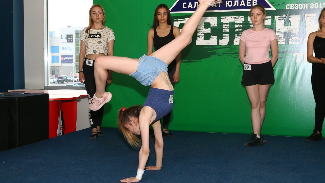 Первым заданием была импровизация: под музыку потенциальные представительницы группы поддержки «Салавата» исполняли, что умели. Второе — шпагат. С этим справились далеко не все участницы кастинга. Третье — повторить связку движений.