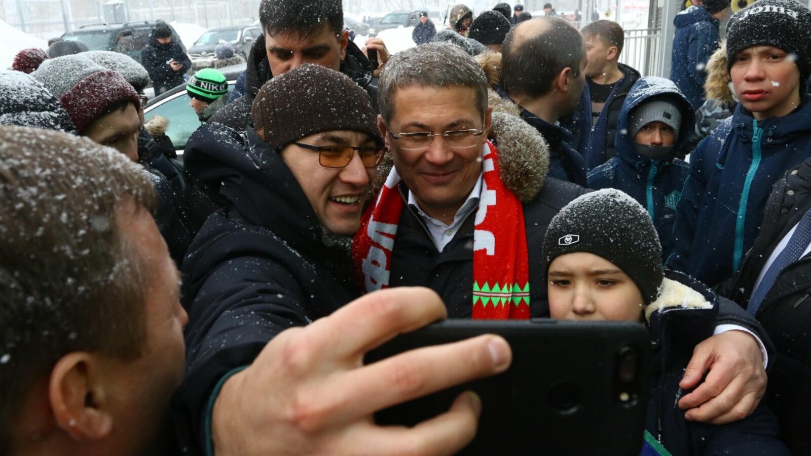 Радий Хабиров устроил селфи-фотосессию с футбольными болельщиками