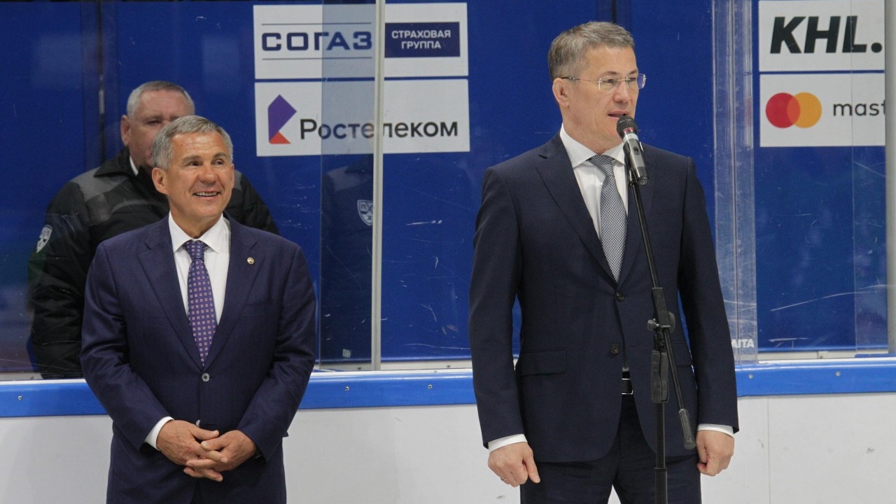 «В первую очередь я поздравляю Башкортостан со 100-летием. Вы первые из наших республик празднуете юбилей и очень приятно находиться в вашем прекрасном городе, - подчеркнул президент Татарстана. - Хоккей и для наших республик самый главный вид спорта. Я желаю вам хорошей игры».