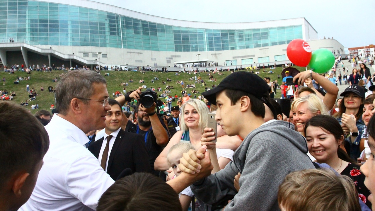 На площадь к спортсменам заглянул врио главы Башкирии Радий Хабиров в сопровождении супруги Каринэ Хабировой. Руководитель республики пообщался с представителями всех команд из региона (Уфа, Стерлитамак, Бирск, Белорецк, Кумертау, Туймазы). Тренеры и юные спортсмены долго общались с Радием Хабировым, а он никому не смог отказать в селфи.