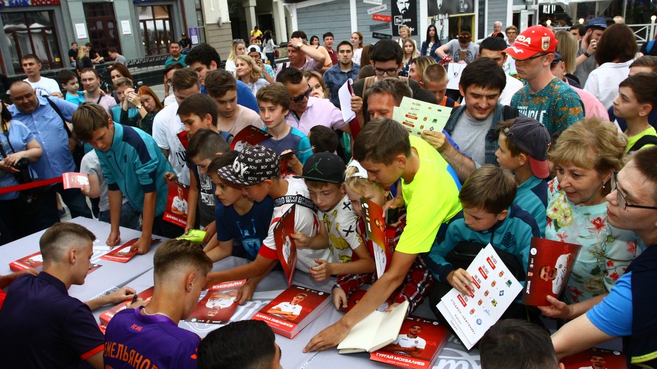 После небольшого интерактива с болельщиками, футболисты башкирской команды раздали автографы и никому не отказали в селфи.