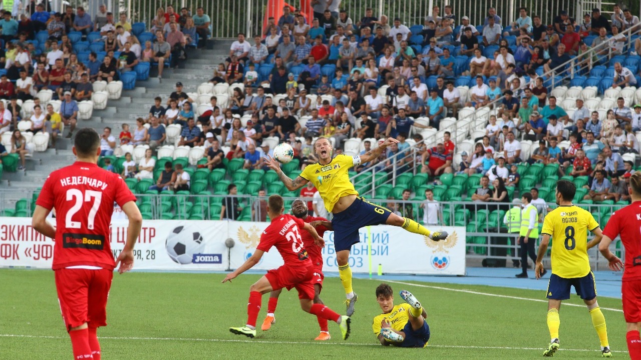 Башкирский клуб открыл счет под занавес первого тайма, второй гол был забит на исходе второго тайма. Автором обоих стал Сильвестр Игбун.