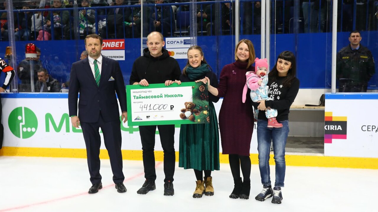 С финальной сиреной на лед болельщики стали бросать в чашу «Уфа-Арены» игрушки, которые к Новому году отправятся в детские дома и многодетные семьи. Сумма с их продажи собралась внушительная - более 440 тысяч рублей. Соответствующий сертификат сотрудники благотворительного фонда передали родителям малышки. Игроки «Салавата» обещали удвоить эту сумму и также принять участие в выздоровлении маленькой Николь.