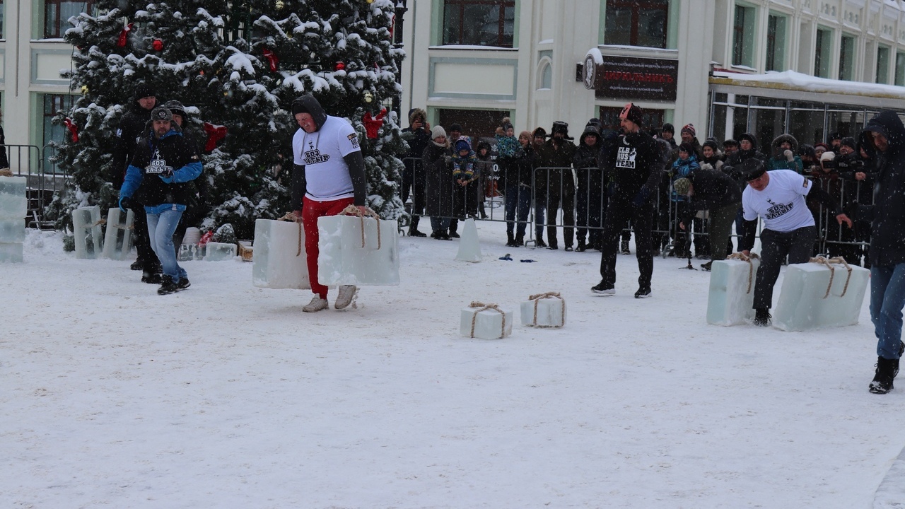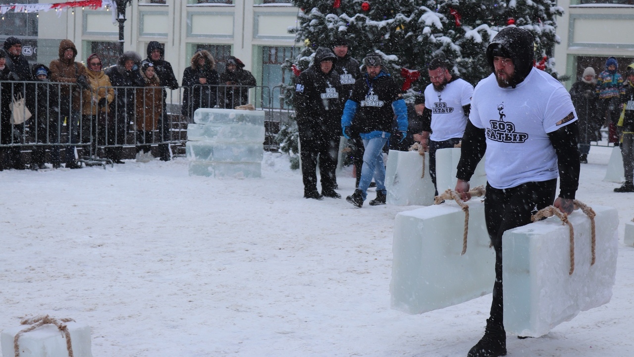 «В течение 2,5 часов спортсмены выполнили пять упражнений с ледяными снарядами весом от 30 до 250 килограммов. Это «богатырский кёрлинг» с полутораметровой шайбой весом 250 килограммов, «прогулка фермера» — пробежка на 40 метров с двумя 100-килограммовыми «чемоданами», а также «ось Аполлона», где максимальное количество раз нужно выжать плиту весом более 100 килограммов, и ряд других испытаний», - сообщили в пресс-службе администрации Кировского района г. Уфы.