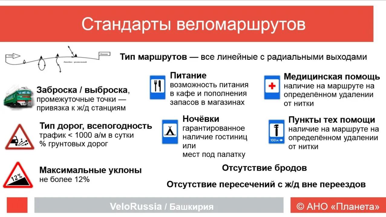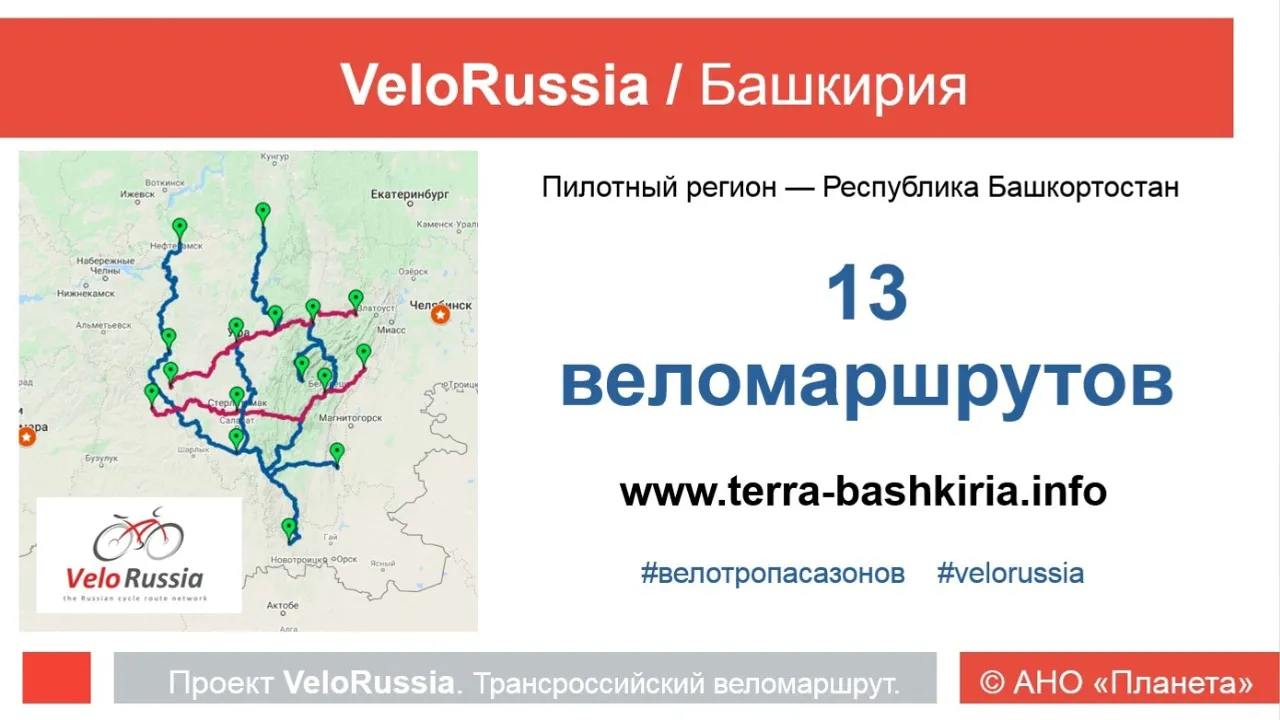 «Башкирия как нельзя лучше подходит для велотуризма, поэтому проект стартует именно здесь. Все веломаршруты будут проходить по региональным и местным дорогам с низким трафиком движения. Для удобства заброски и выброски узловые точки привязаны к железнодорожным станциям. Веломаршруты проложены так, чтобы всегда была возможность ночёвки в гостиницах или на базах отдыха, а в случае их отсутствия была возможность поставить палатку в безопасном месте. Такие путешествия доступны для прохождения людям с любой физической подготовкой», - рассказал Антон Сазонов.