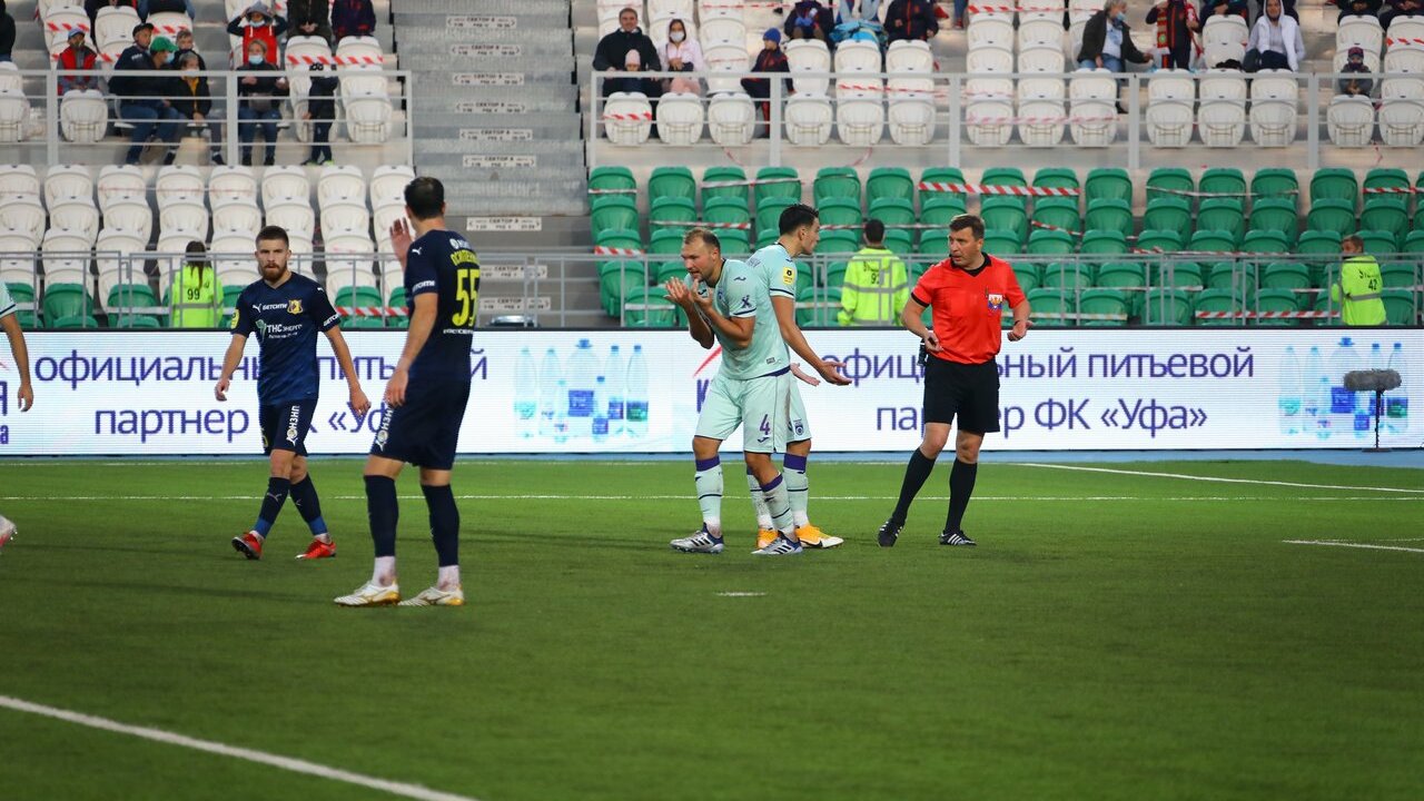 В четвёртом туре российской Премьер-лиги футбольный клуб «Уфа» принимал дома «Ростов». Хозяева в прошлом сезоне дважды обыграли команду Валерия Карпина и в этот раз вышли на поле с одной целью - победить. Откровенно опасных моментов соперники не создавали около получаса, главный арбитр встречи не спешил раздавать карточки за нарушения, ограничиваясь предупреждениями. Но игровой эпизод на 37-й минуте заставил вмешаться судью VAR. Кротов грубо сыграл против Козлова и получил «красную». Тяжело пришлось оборонительной линии «Уфы» последние минуты тайма. «Ростовчане» начали давить и вынудили ошибиться башкирских защитников. Никитин уже с линии ворот спас «уфимцев» от гола.