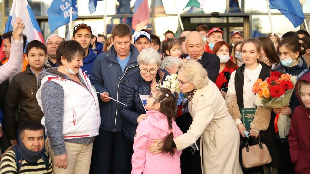 Королеву шашек Тамару Тансыккужину встретили в Уфе российским и башкирским флагами