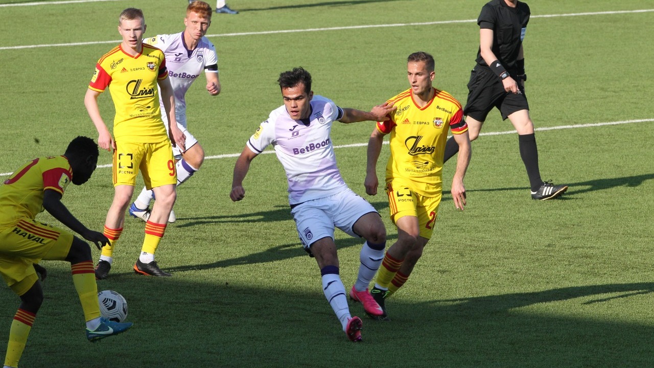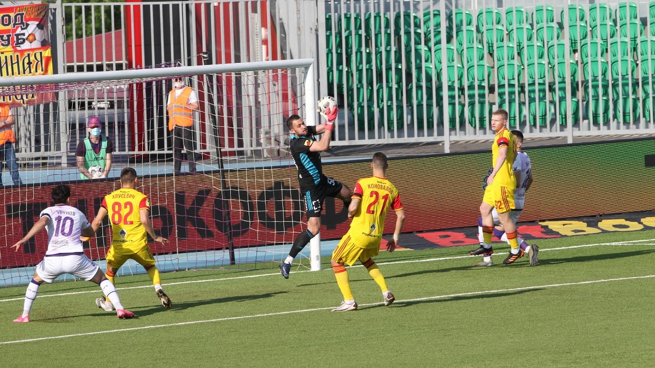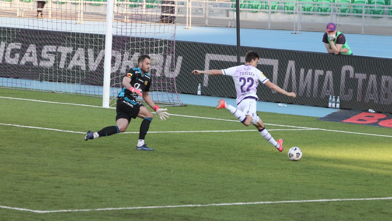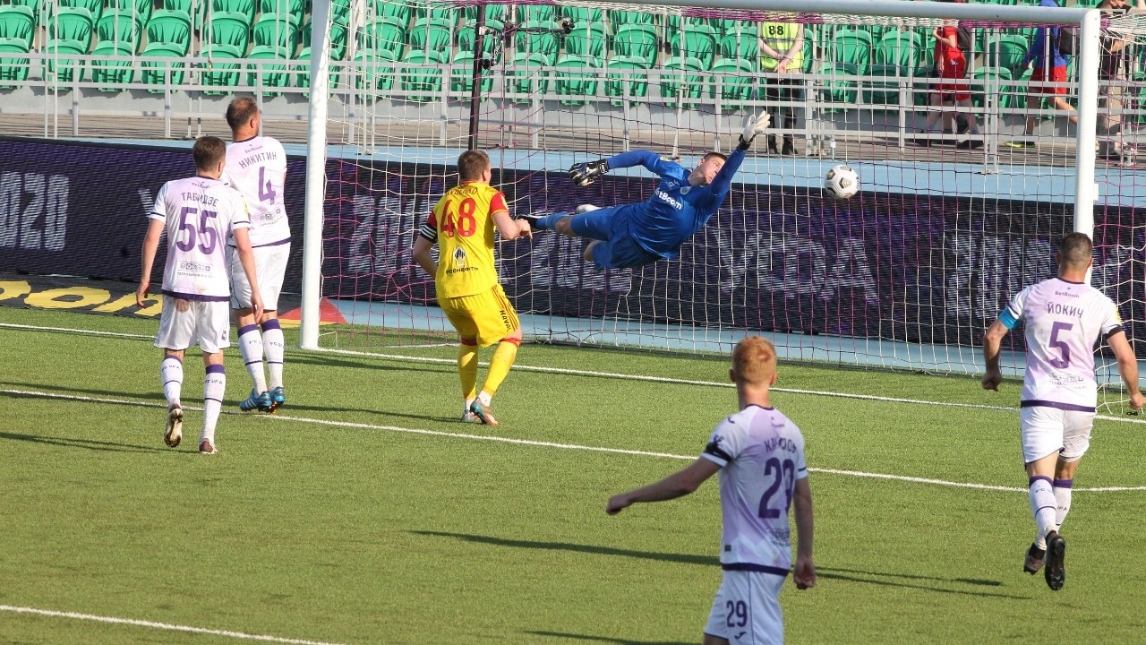До перерыва стадион «Нефтяник» увидел еще один гол в ворота Егора Шамова. Защитник Максим Беляев срезал мяч и оформил автогол — 2:1.